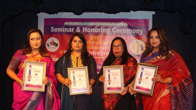 আন্তর্জাতিক নারী দিবস উপলক্ষে প্যারিসের সায়েন্টোলজি সেন্টারের সেলিব্রিটি থিয়েটারে ফ্রান্স-বাংলাদেশ প্রেসক্লাবের উদ্যোগে আয়োজিত সেমিনারে চার বাংলাদেশি নারী উদ্যোক্তাকে সম্মাননা দেওয়া হয়েছে।
